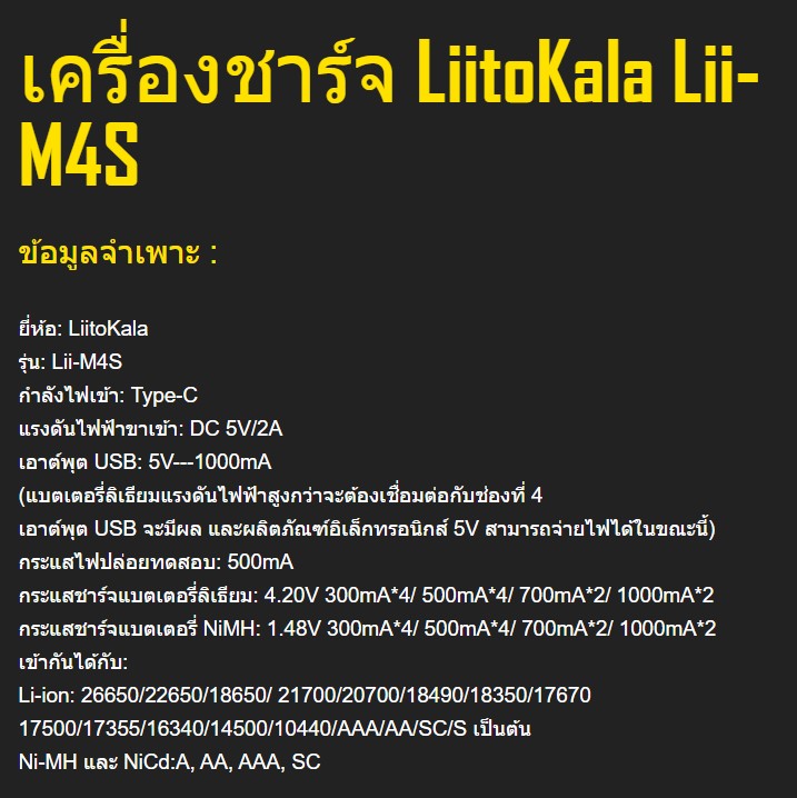 เครื่องชาร์จ LiitoKaLa Lii-M4S